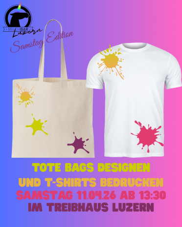 Die Milchbar Luzern lädt zum Bemalen von Tote Bags ein. Die benötigten Materialien werden von der Milchbar Luzern bereitgestellt, du brauchst also nur vorbeizukommen. Ob allein oder mit Freund*innen, du bist herzlich willkommen, einen unterhaltsamen Abend mit anderen queeren jungen Erwachsenen zu verbringen. Die Veranstaltung richtet sich an junge Queers bis 25 Jahre. Keine Anmeldung nötig.