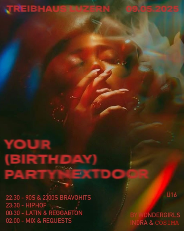 Besonderes Angebot: Alle Gäste, die am 09.05. ebenfalls Geburtstag haben, erhalten freien Eintritt. Der Einlass ist ab 16 Jahren und nur mit ID oder Pass gültig. Kein Einlass mit Swisspass oder Online ID.